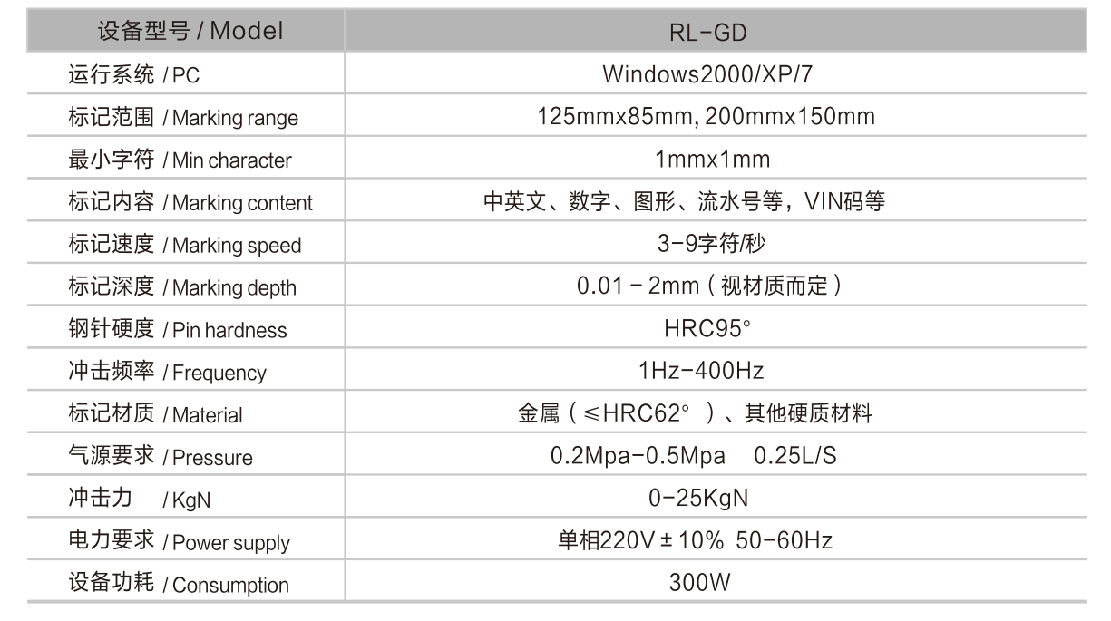 - 适合于各种汽车零部件、铭牌、金属标牌、齿轮、管件、钢轮等各种金属件平面打标和圆锥类横向打标。